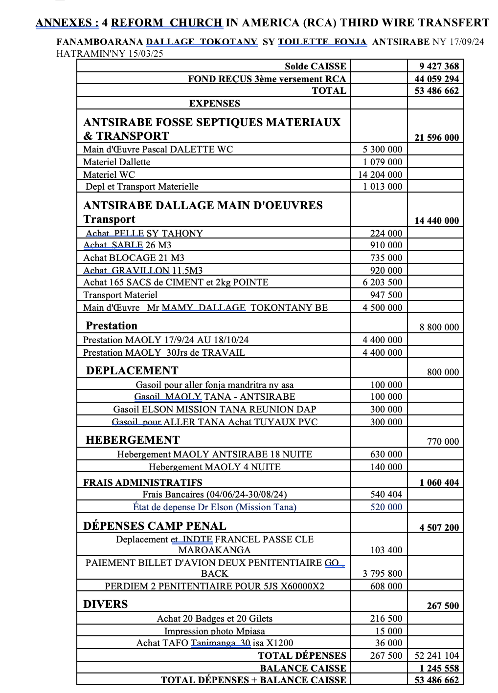 · Annexe 3: REFORM CHURCH IN AMERICA (RCA) SECOND WIRE TRANSFERT